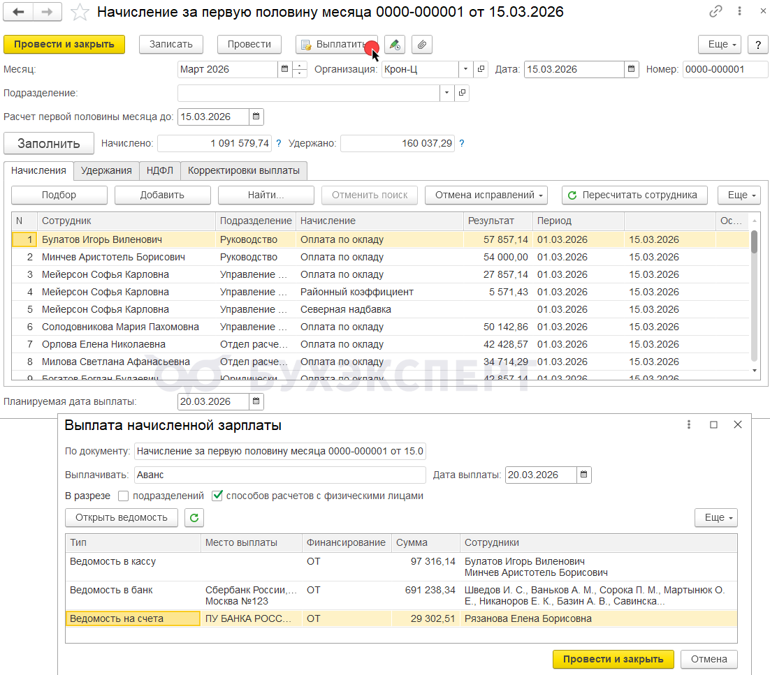 - Создание ведомостей из начисления аванса