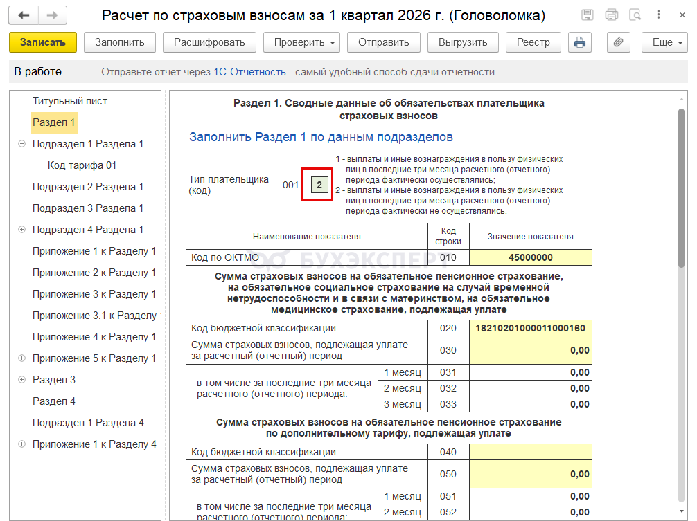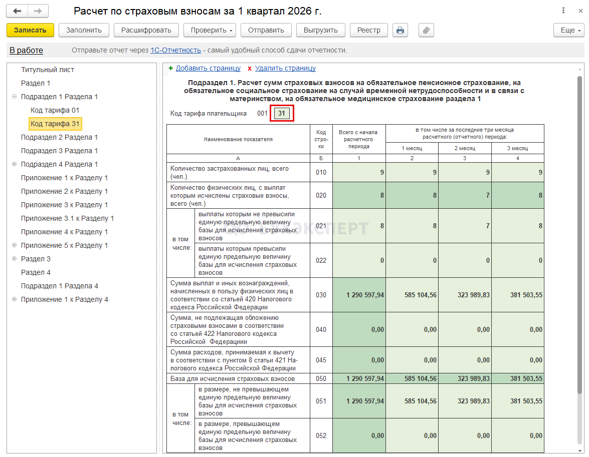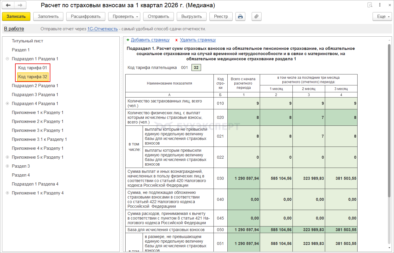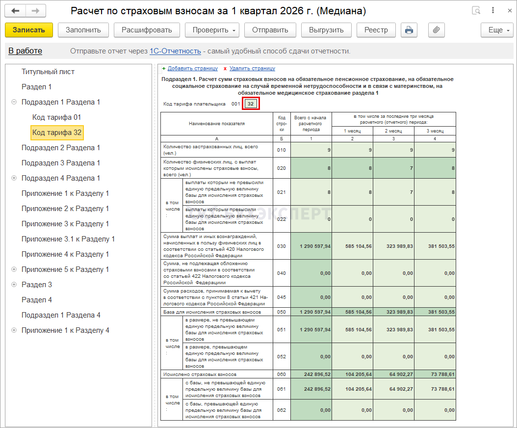Тогда коды тарифа в Подразделе 1 (общий код 01 и новый код 32) заполнятся в программе автоматически.