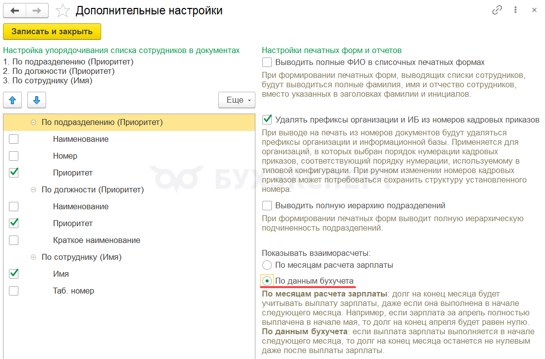Для удобства сверки, в ЗУП 3.1 можно на время установить отражение сальдо в зарплатных отчетах так, чтобы оно соответствовало данным бухучета. Сделать это можно в разделе Настройка – Дополнительные настройки установив переключатель Показывать взаиморасчеты в положение По данным бухучета.