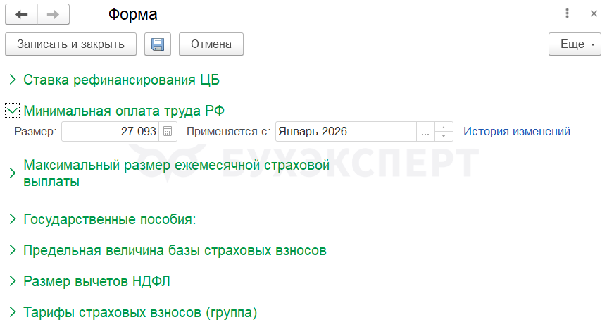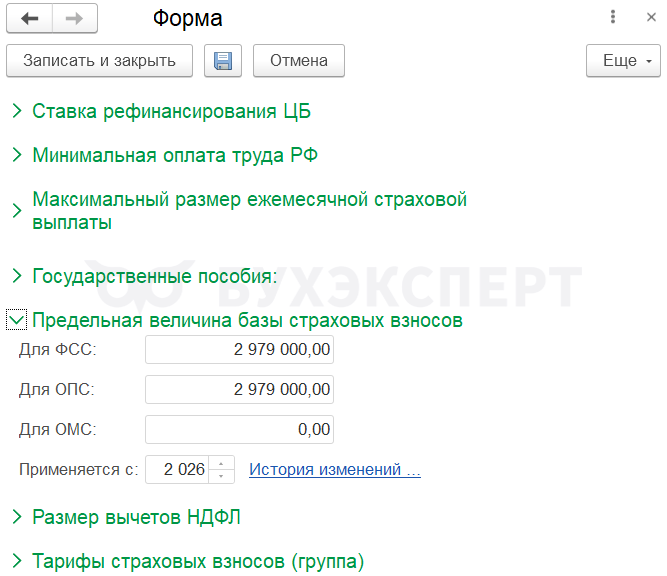 Если в вашей базе ЗУП 3.1 не обновилась предельная величина базы страховых взносов с 2026 года, ее можно обновить вручную – Обновление законодательных значений (классификаторов) в ЗУП 3.