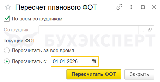 Если до начисления годовых премий за 2025 год по сотрудникам была рассчитана оплата по среднему заработку за периоды, начиная с 1 января 2026 года , то такую оплату придется пересчитать после начисления премии. Например, это касается отпускных по отпускам, начавшимся с 1 января 2026 и позднее. Для массового пересчета отпускных удобно использовать внешнюю обработку от Бухэксперт — Внешняя обработка для проверки и пересчета среднего заработка для отпусков.