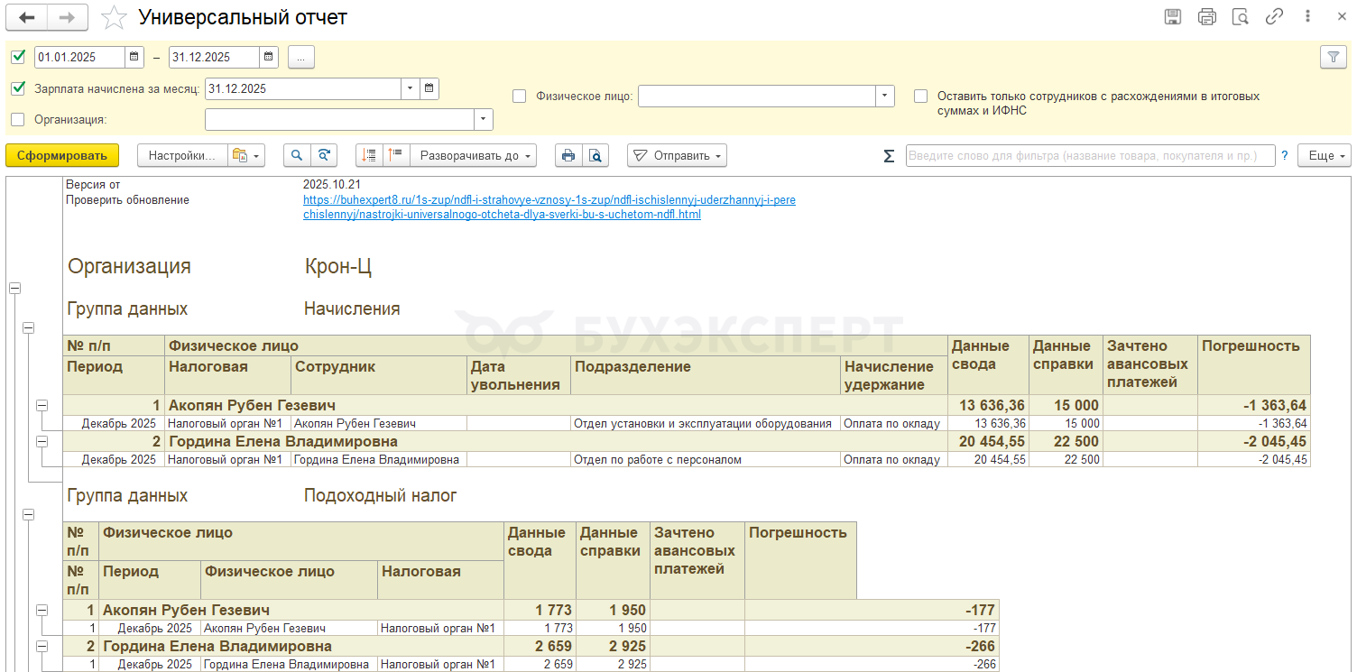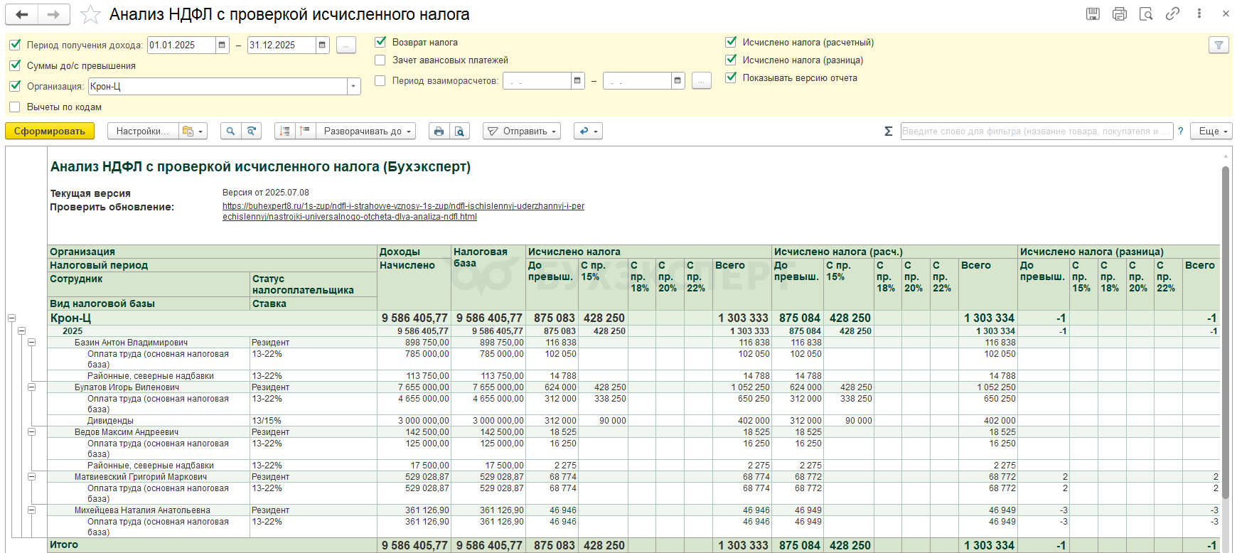 Сверка НДФЛ между ЗУП 3.1 и 1С:Бухгалтерией включает проверку сумм:
