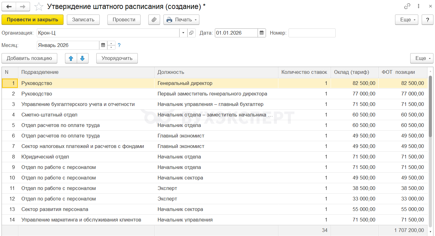 Подробнее о ведении штатного расписания в ЗУП 3.1. – в статье Варианты ведения и настройки штатного расписания.