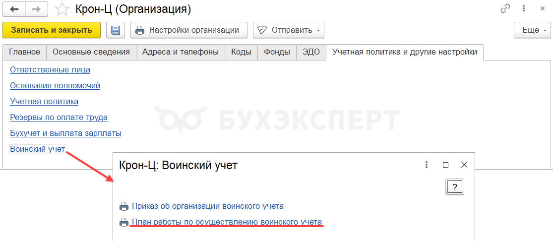 План работы по воинскому учету на 2026 год в ЗУП 3.1 можно вывести на печать из карточки организации по ссылке Воинский учет – План работы по осуществлению воинского учета. Подробнее — в статье Как начать вести воинский учет в ЗУП 3.1.