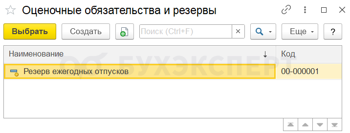 Новый вид резерва при этом создавать не нужно. Каждый год используем один и тот же предопределенный вид резерва – Резерв ежегодных отпусков.