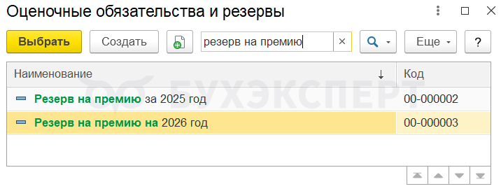 Настройку резерва на премии нужно делать каждый год. При этом вид резерва каждый год нужно создавать новый. Для удобства можно указывать год.
