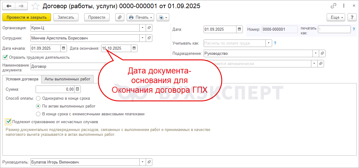 В ЗУП 3.1 эта дата определяется по полю Дата окончания в документе Договор (работы, услуги) (Зарплата – Договоры, в т.ч. авторские).