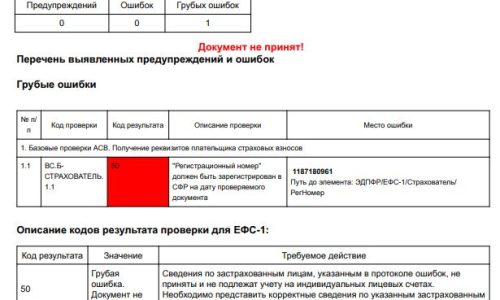 После отправки ЕФС-1 индивидуальные предприниматели получают отрицательный протокол с ошибкой «Регистрационный номер» должен быть зарегистрирован в СФР на дату проверяемого документа.