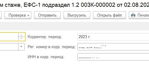 - Если неверно указали периоды стажа – представляем ЕФС-1 подраздел 1.2 с типом Корректирующая