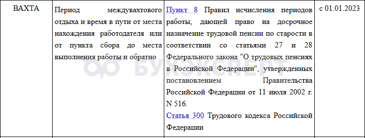 В периоды работы вахтовым методом, дающей право на досрочное назначение трудовой пенсии по старости, включается время выполнения работ на объекте, время междусменного отдыха в вахтовом поселке, время в пути от места нахождения работодателя или от пункта сбора до места выполнения работы и обратно, а также время междувахтового отдыха в данный календарный отрезок времени...