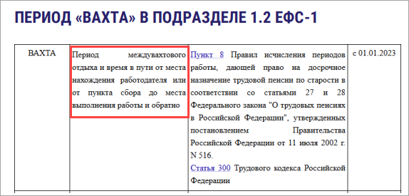 Ранее в ЕФС-1 период ВАХТА назывался «Вахтовый метод работы», а еще ранее в СЗВ СТАЖ «Время вахтового отдыха» — это вносило путаницу, что же кодировать кодом ВАХТА