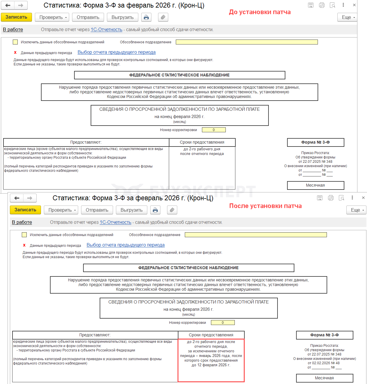 Чтобы в статформе 3-Ф был указан новый срок предоставления – установите патч