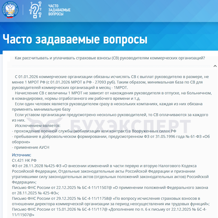 ФНС отметила, что за редким исключением, для коммерческих организаций с единоличным исполнительным органом-физлицом это фактически невозможно (независимо от типа договора и выплат). Причина — с выплат руководителю-физлицу страховые взносы уплачиваются с минимальной базы в размере МРОТ (п. 1 ст. 421 НК РФ).