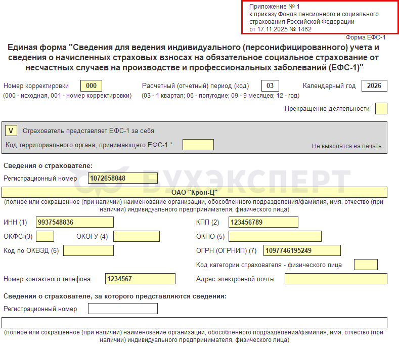 В релизах ЗУП 3.1.34.253/3.1.37.54 появилась возможность заполнить и выгрузить формы ЕФС-1 в новом формате по Приказу СФР от 17.11.2025 N 1462 — С 30.12.2025 действует обновленная форма ЕФС-1.