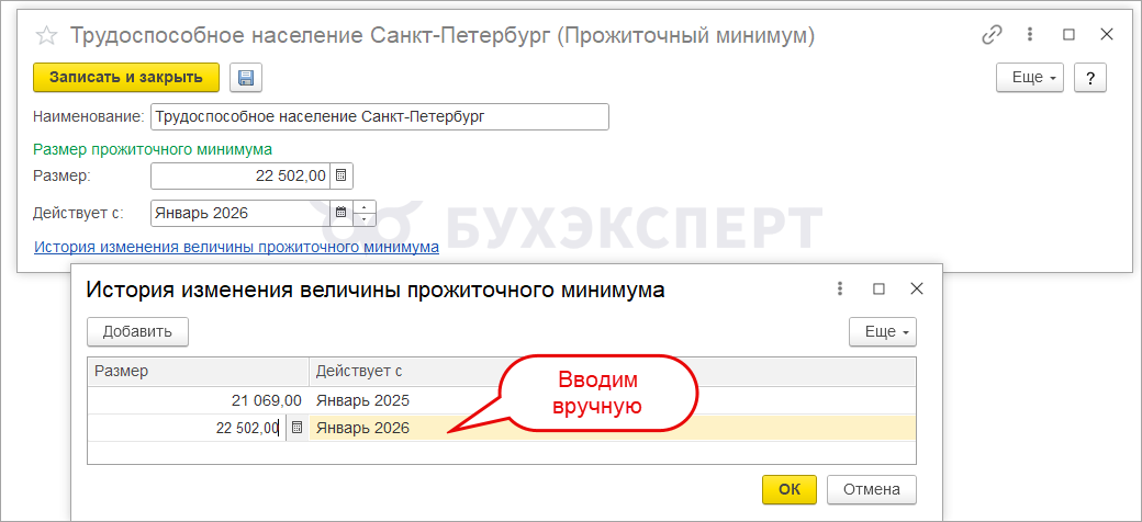 В ЗУП 3.1 для величины прожиточного минимума предусмотрен справочник Прожиточные минимумы (Настройка – См также – Прожиточные минимумы). Данные в справочник вводим вручную. Как правило, в программе нам нужен региональный прожиточный минимум.