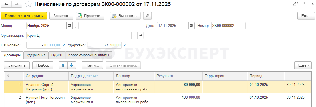 Ошибка в ЗУП 3.1 – не учитываются ручные корректировки суммы начислений в документе «Начисление по договорам»