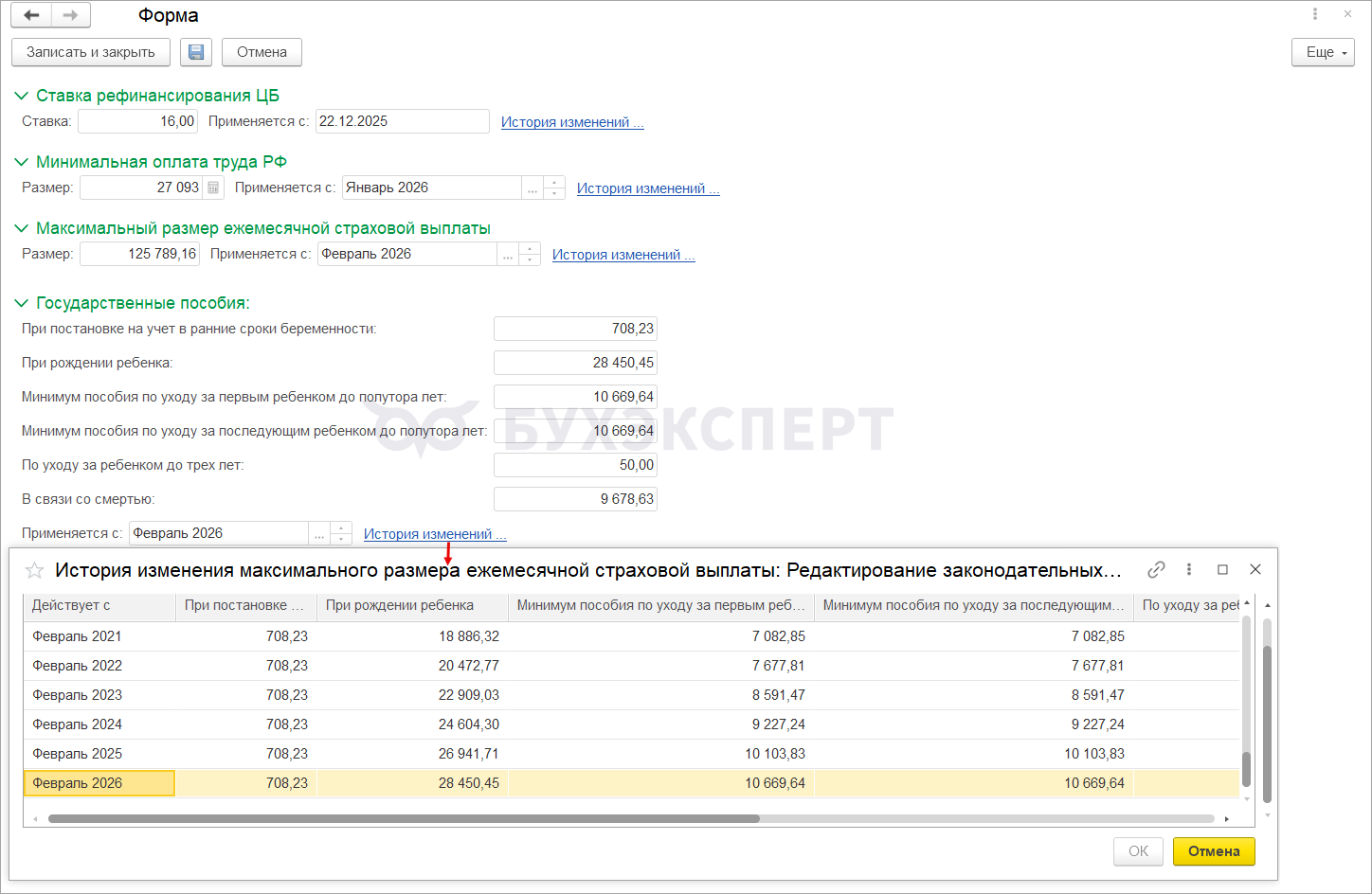 В ЗУП 3.1 предельные размеры пособий хранятся в обработке Редактирование законодательных значений (Настройка — Сервис — Редактирование законодательных значений). Если в программе подключена Интернет-поддержка (Администрирование — Интернет-поддержка и сервисы), новые значения загрузятся в программу автоматически в фоновом режиме.