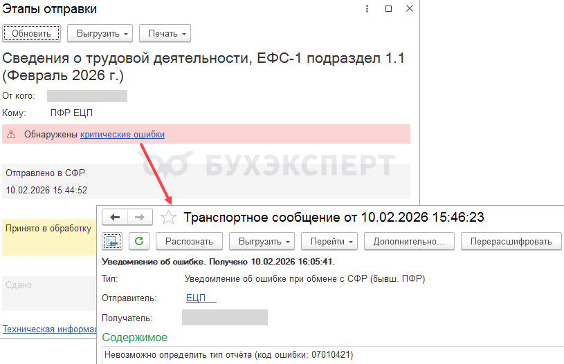 Как будет выглядеть ошибка отправки ЕФС-1
