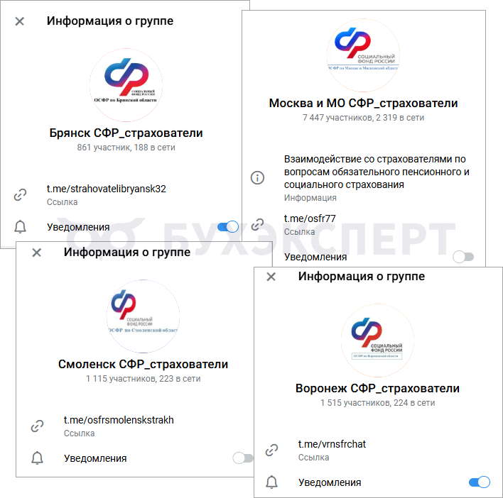Большинство региональных отделений СФР создали телеграм-каналы для работодателей своего региона.