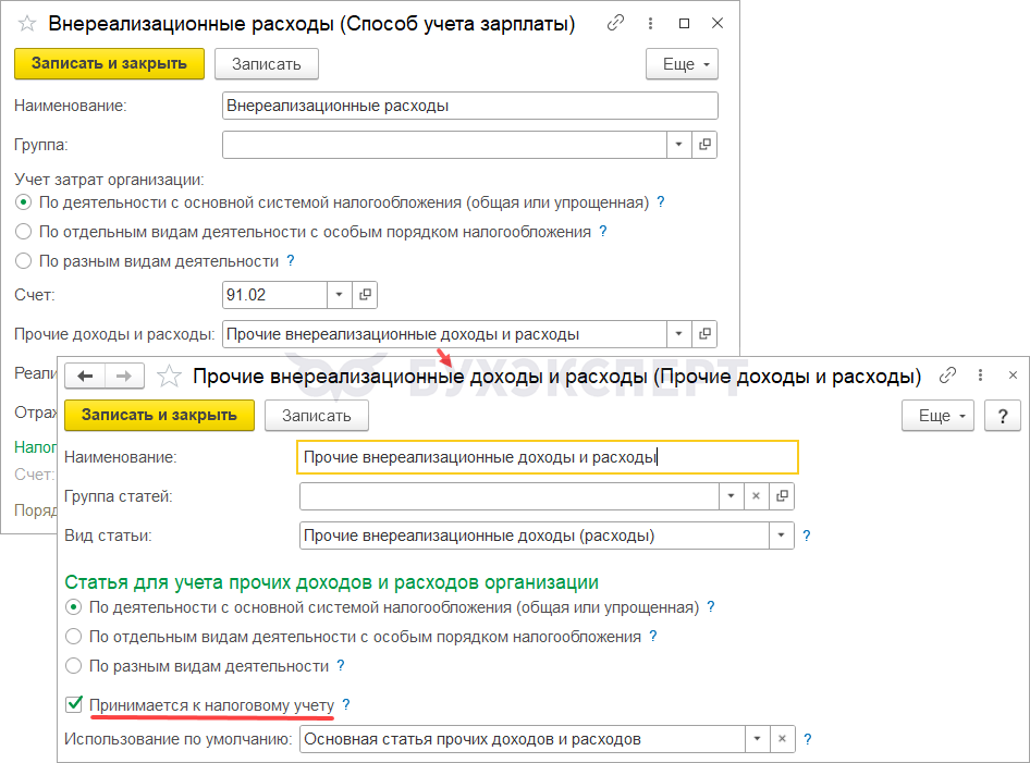 На стороне 1С:Бухгалтерии для нового способа отражения прописываем проводки на сч. 91, но теперь уже как принимаемые в НУ расходы.