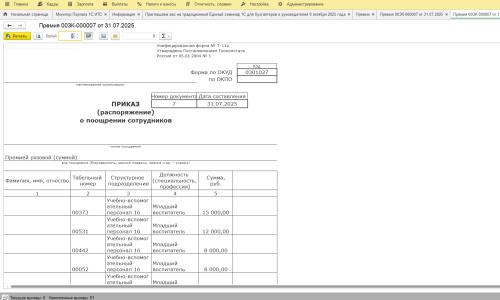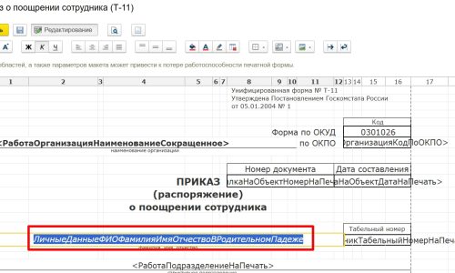 Ошибка в ЗУП 3.1 при печати приказа о поощрении Т-11