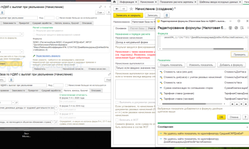 Добрый день, помогите пожалуйста донастроить выплату по соглашению сторон при увольнении, дошла до момента создания начисления Налоговая база по НДФЛ с выплат при увольнении, ввела формулу как у Вас на сайте, но программа ругается, что не удалось найти показатель СреднийСФРДля Бир и ДнейКалендарныхДляНеоблЧастиКомпенс, как и где создать эти показатели?