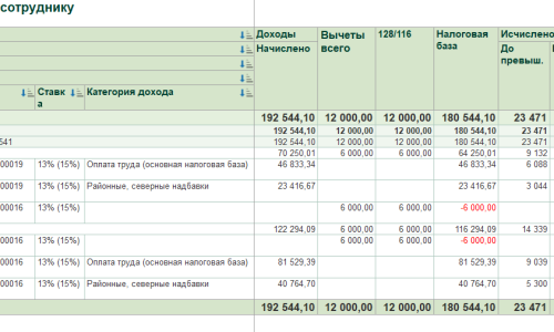 Итоговая сумма налога по сотруднику (632 470 руб.) совпадает с нашими расчетами, но в разрезе категорий суммы не сходятся – пересортица так и осталась. Сумма разницы составляет: