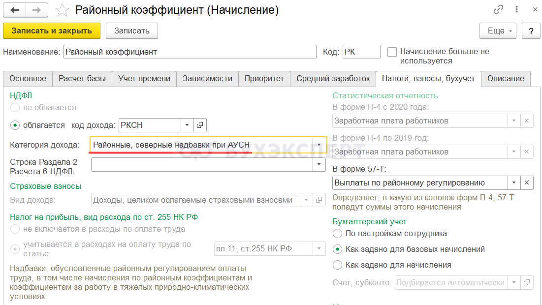 Вид начисления «Районный коэффициент» в ЗУП останется один с Категорией дохода «Районные, северные надбавки при АУСН», и он будет общий и для компаний на АУСН, и для компаний на ОСН?