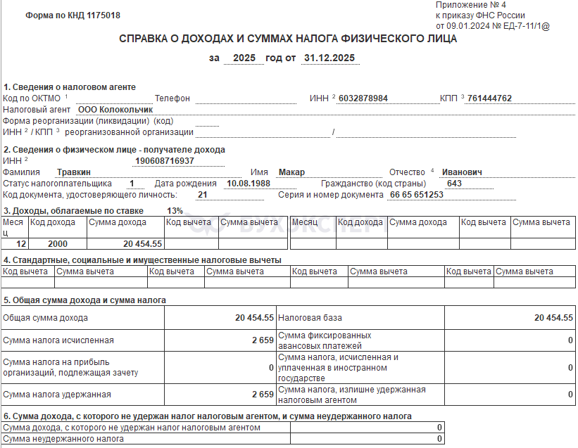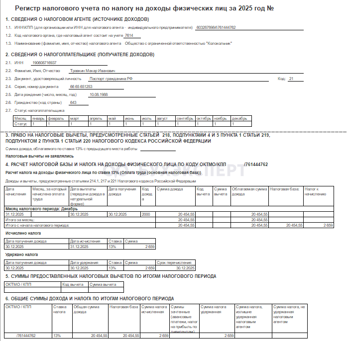 - Сведения о физических лицах, позволяющие идентифицировать налогоплательщика (ФИО, ИНН)