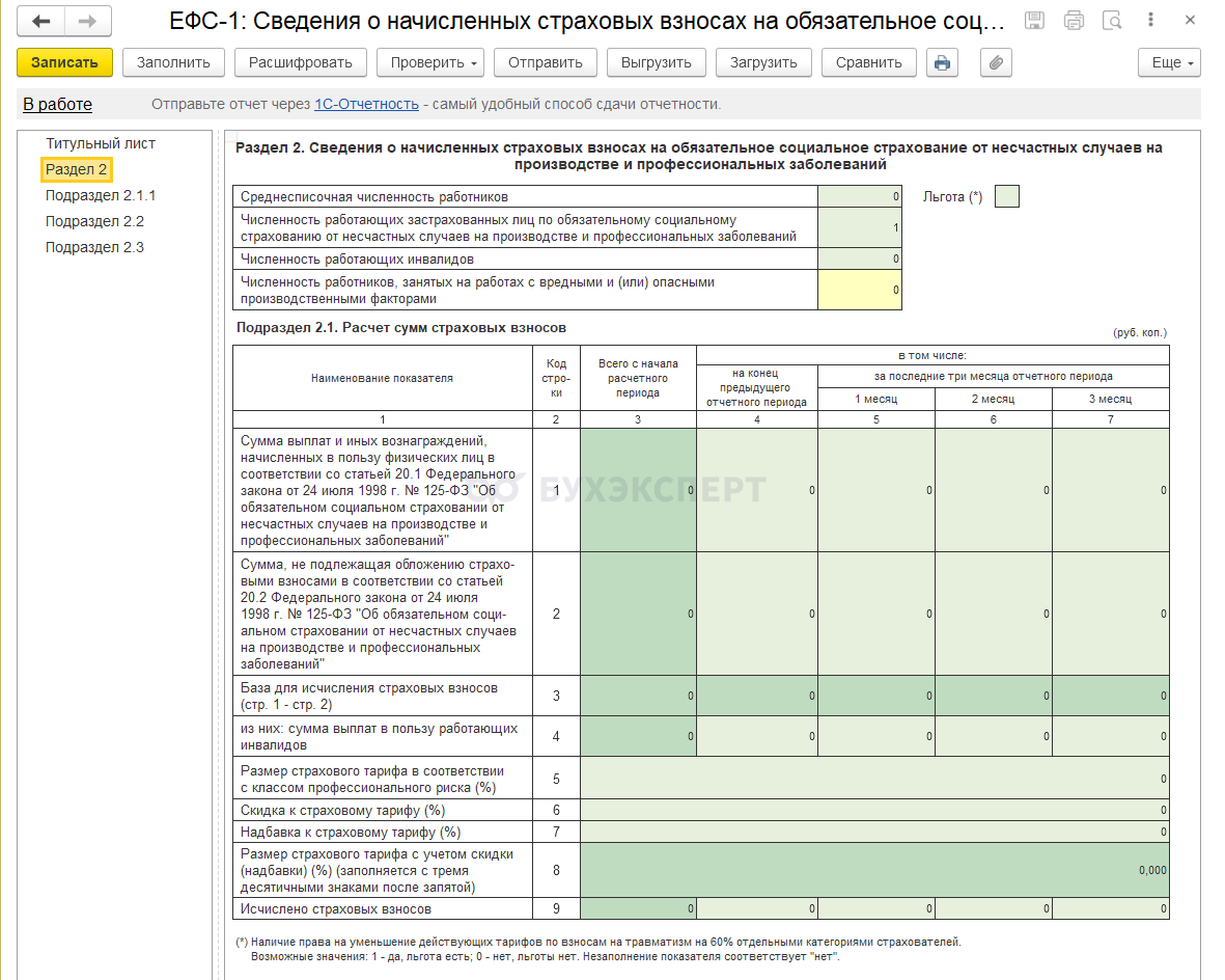 У страхователей, применяющих АУСН, отсутствует обязанность по предоставлению сведений о начисленных страховых взносах по обязательному социальному страхованию от несчастных случаев на производстве и профессиональных заболеваний (Раздел 2 ЕФС-1).