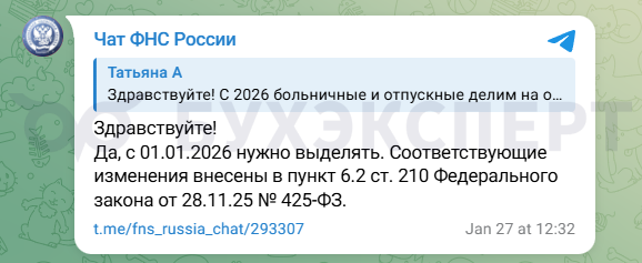 С 01.01.2026 нам придется снова выделять доли РК и СН с выплат по среднему заработку, чтобы облагать их по двухступенчатой шкале НДФЛ. Официальных разъяснений от ФНС, нужно ли будет применять новый порядок ко всем выплатам из среднего заработка, включая пособия по временной нетрудоспособности, пока нет. В телеграм-чате специалисты ФНС проконсультировали, что с больничного нужно выделять доли.