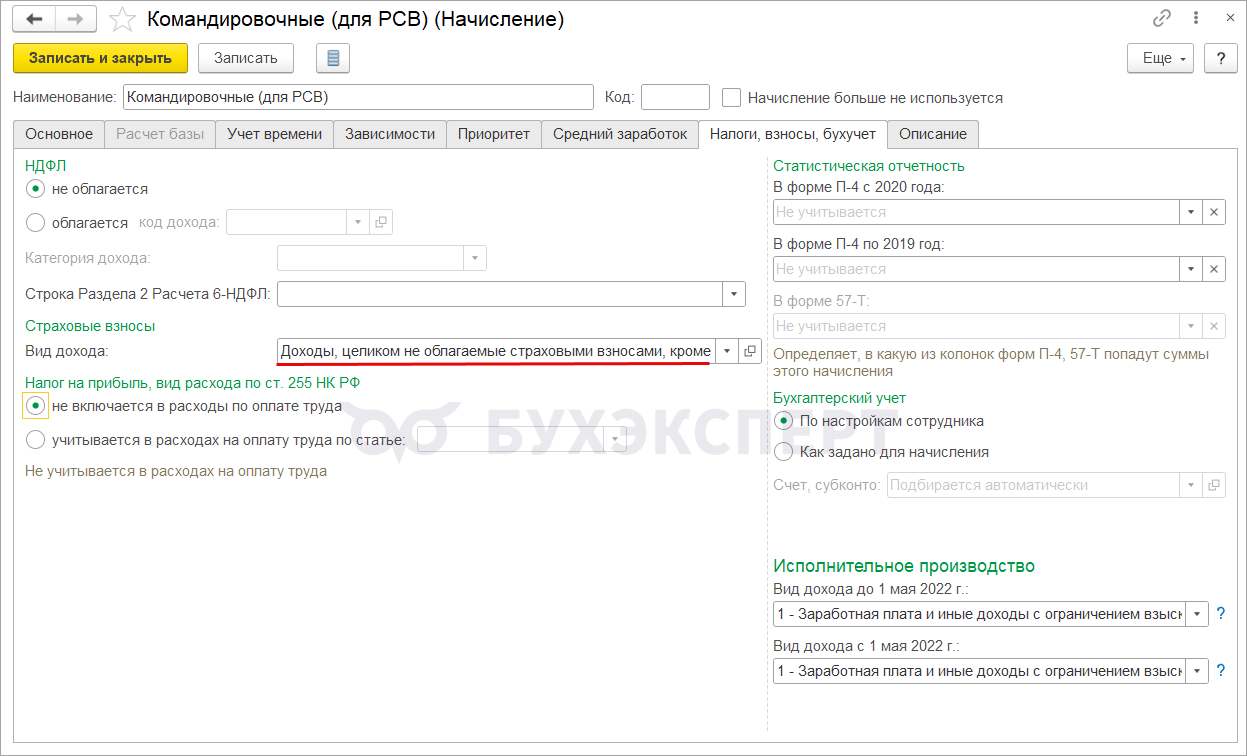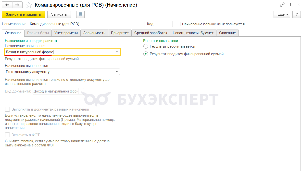 Для доступа к разделу авторизируйтесь на сайте.Чтобы командировочные расходы, оплаченные работодателем, в ЗУП 3.1 попали в РСВ, их нужно зарегистрировать как натуральный доход. Для этого создаем отдельный вид начисления (Настройка — Начисления).