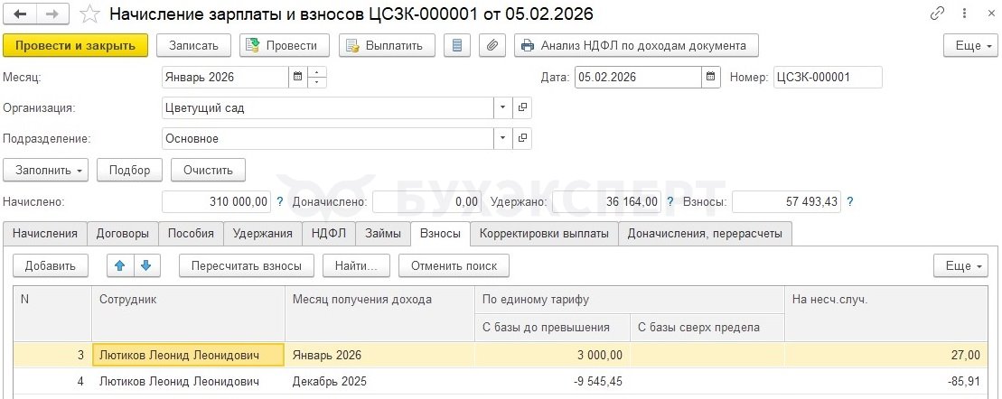 При расчете взносов образовались отрицательные суммы за декабрь 2025 года.