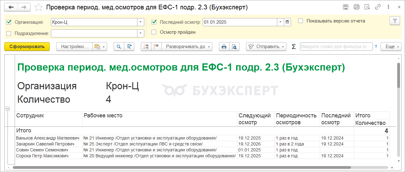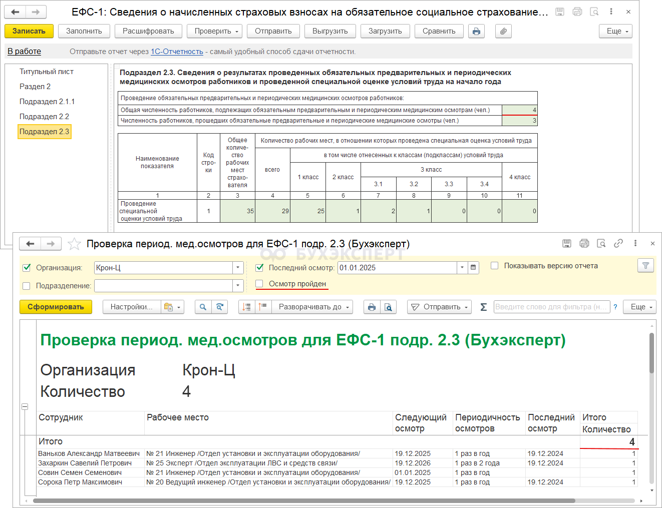 - Проверка период. мед.осмотров для ЕФС-1 подр. 2.3