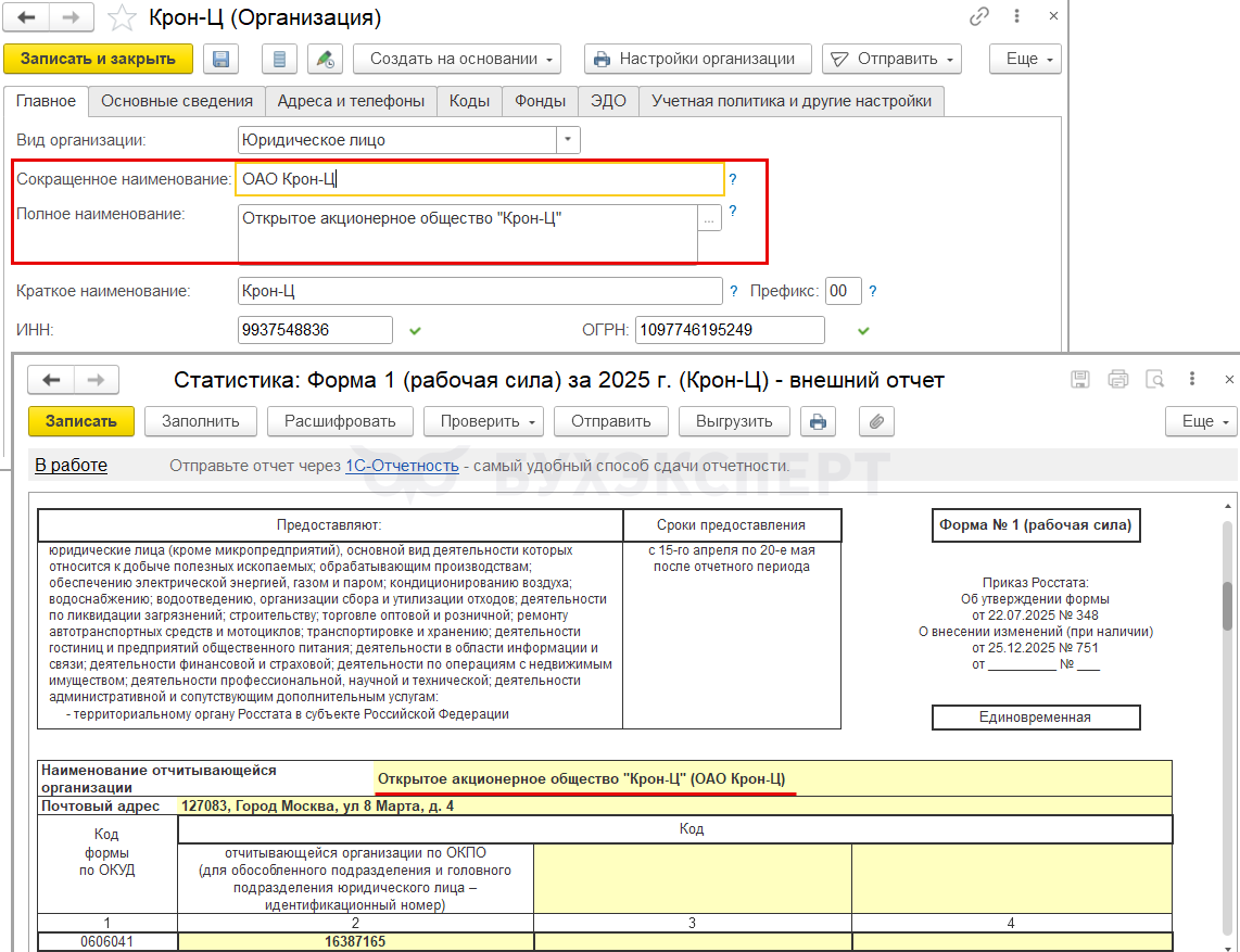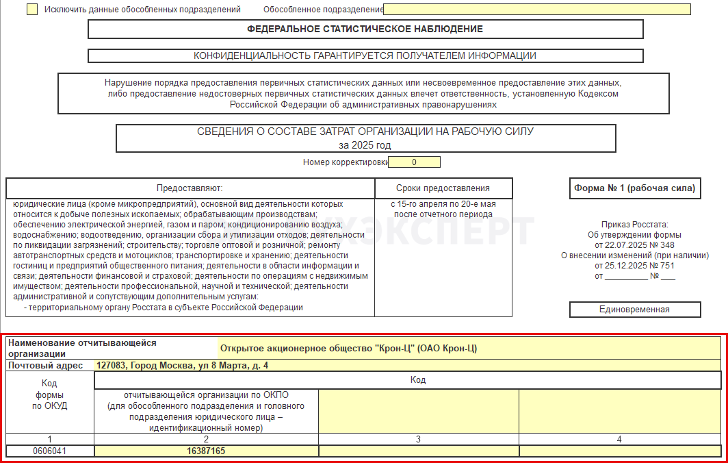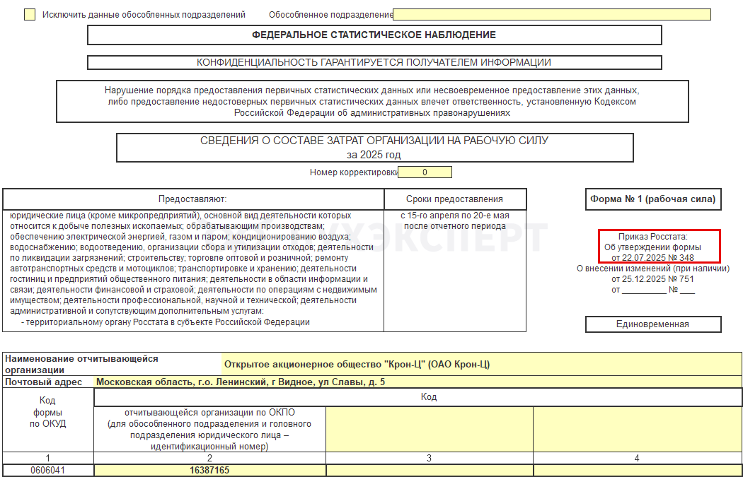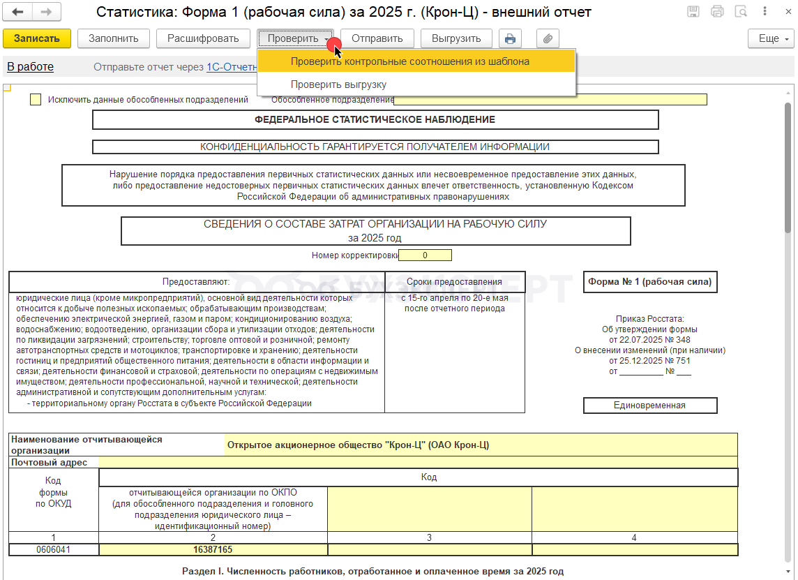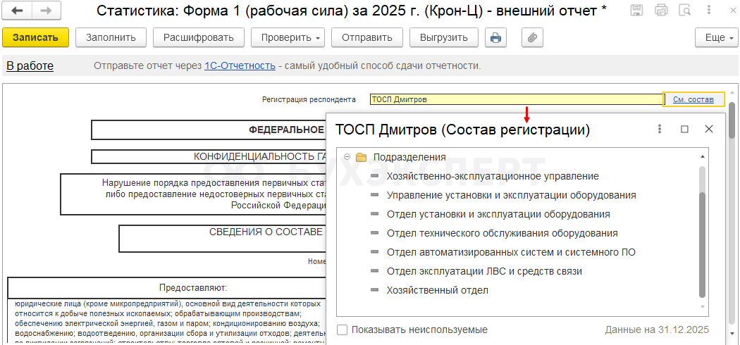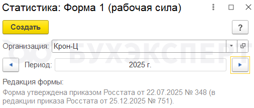 Форма 1 (рабочая сила) в 2026 году в ЗУП 3.1