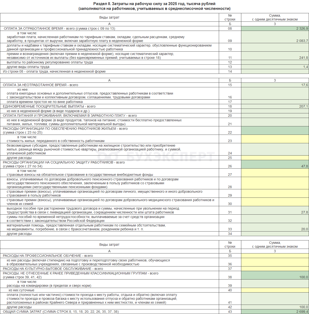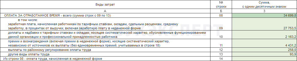 • Раздел II - сведения о расходах на рабочую силу в разрезе видов затрат