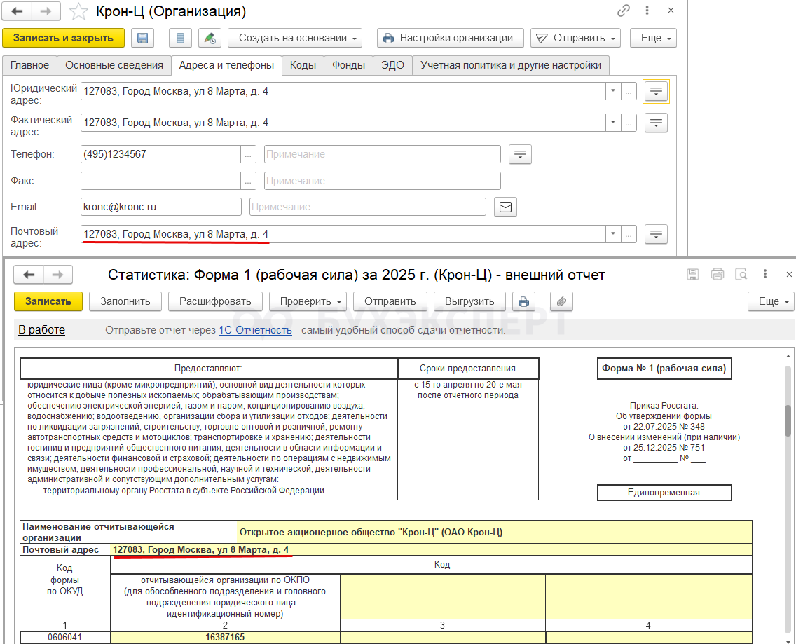 • Адрес берется из карточки Регистрации в Росстате