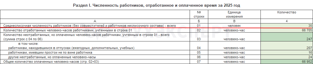 Раздел I. Численность работников, отработанное и оплаченное время за 2025 год