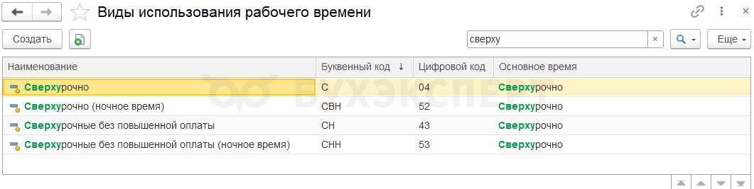 • Сверхурочные часы – в ЗУП 3.1 им соответствуют 4 типовых вида времени