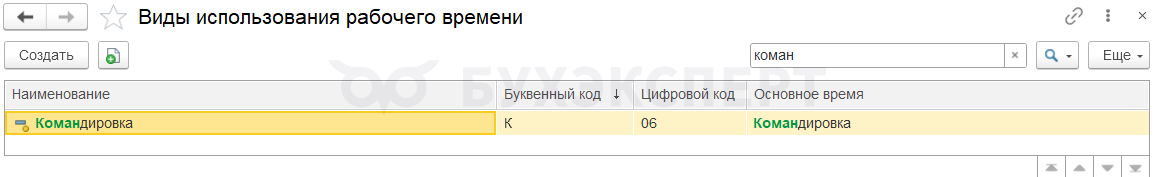 • Время работы в служебных командировках – типовой вид времени Командировка