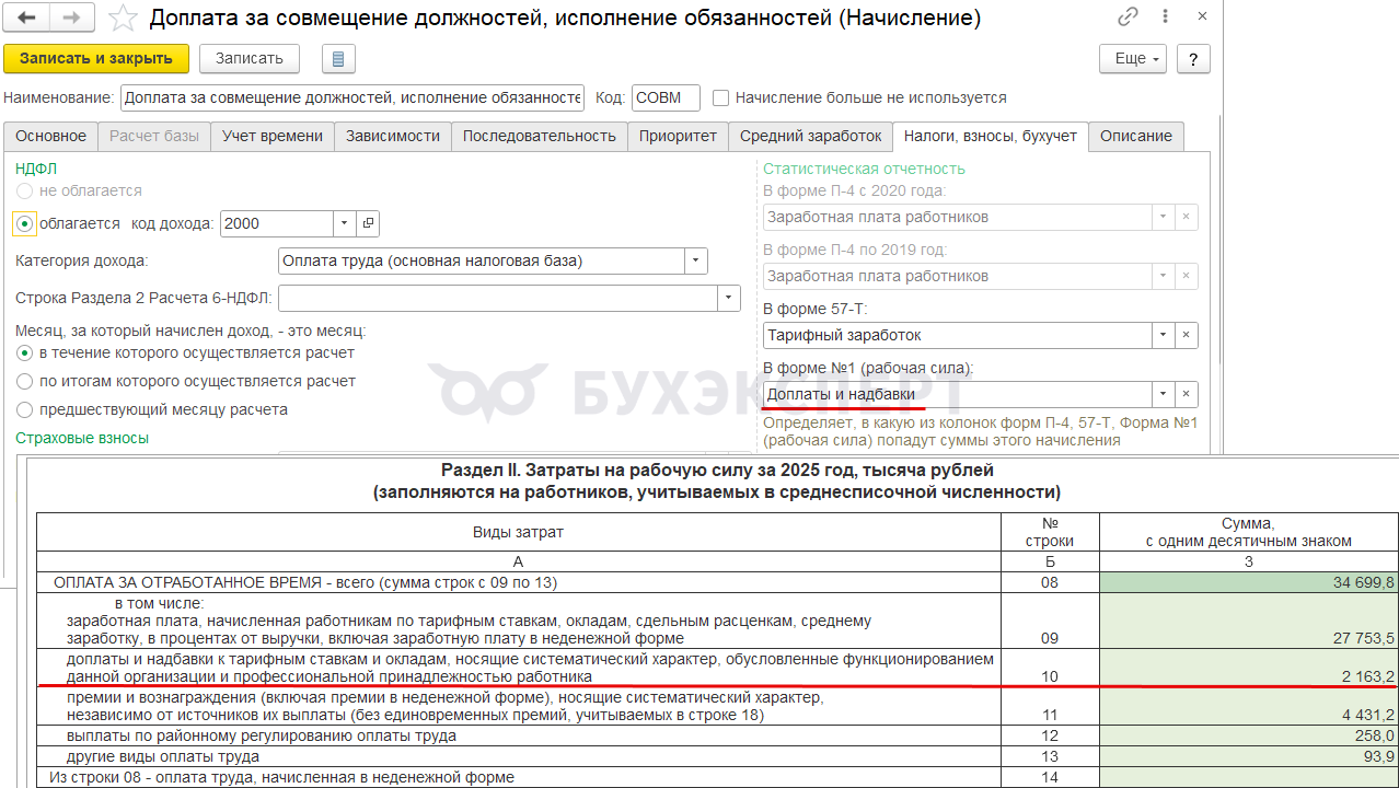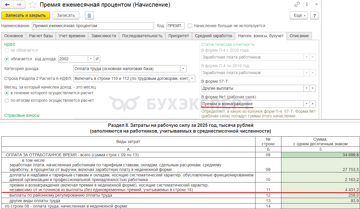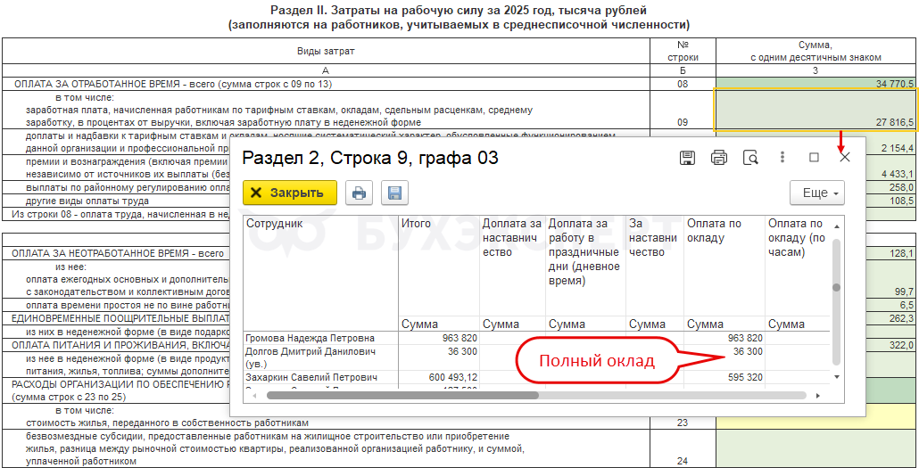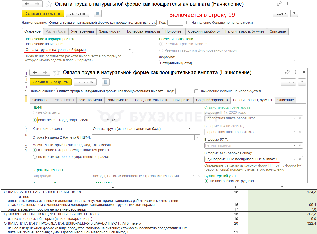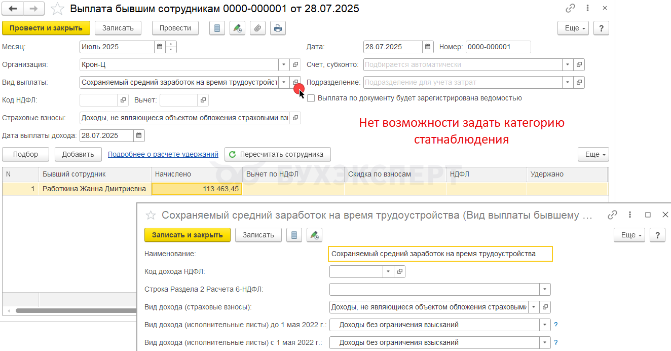 Например, для компенсации за задержку зарплаты, призов и подарков возможности указать категорию в программе нет. Поэтому в отчет для статистики автоматически они не попадают. Если эти выплаты нужно показать в Форме 1 – добавляем суммы в статформу вручную.