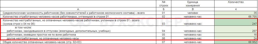 В строках 03 - 06 учитывают неотработанные часы, которые подлежат оплате за счет работодателя (п. 11 Указаний по заполнению формы).