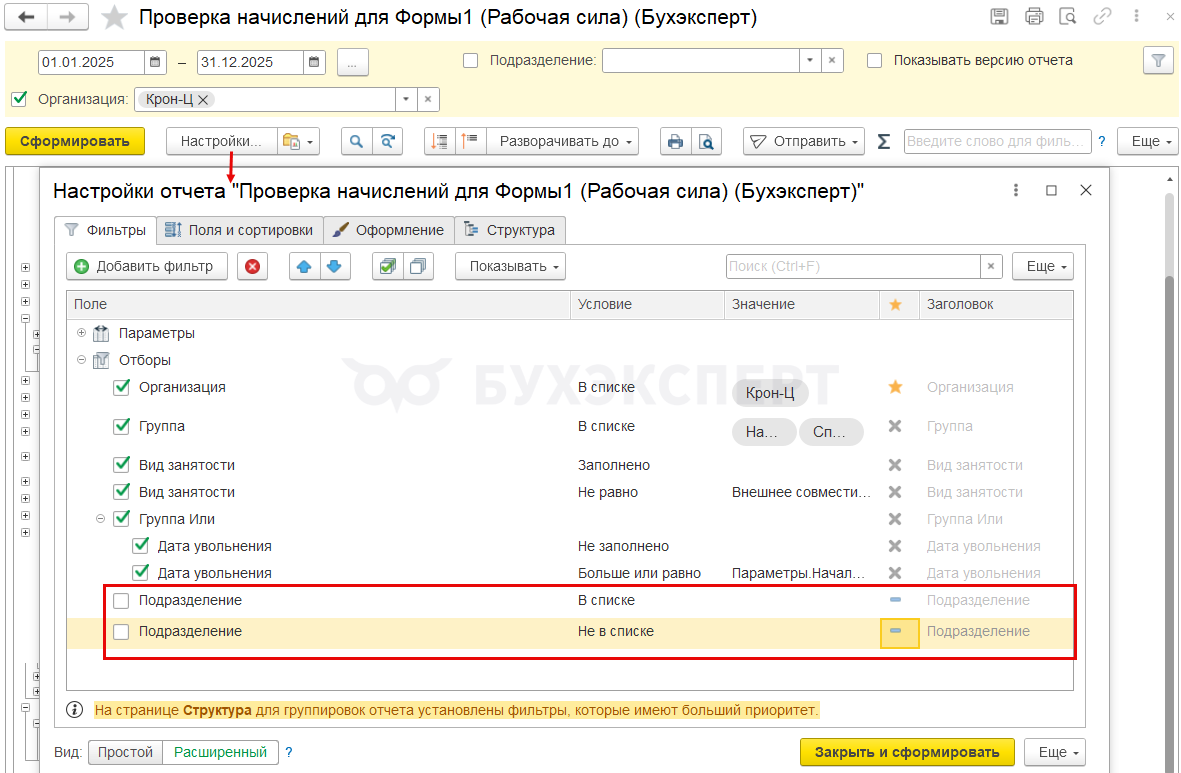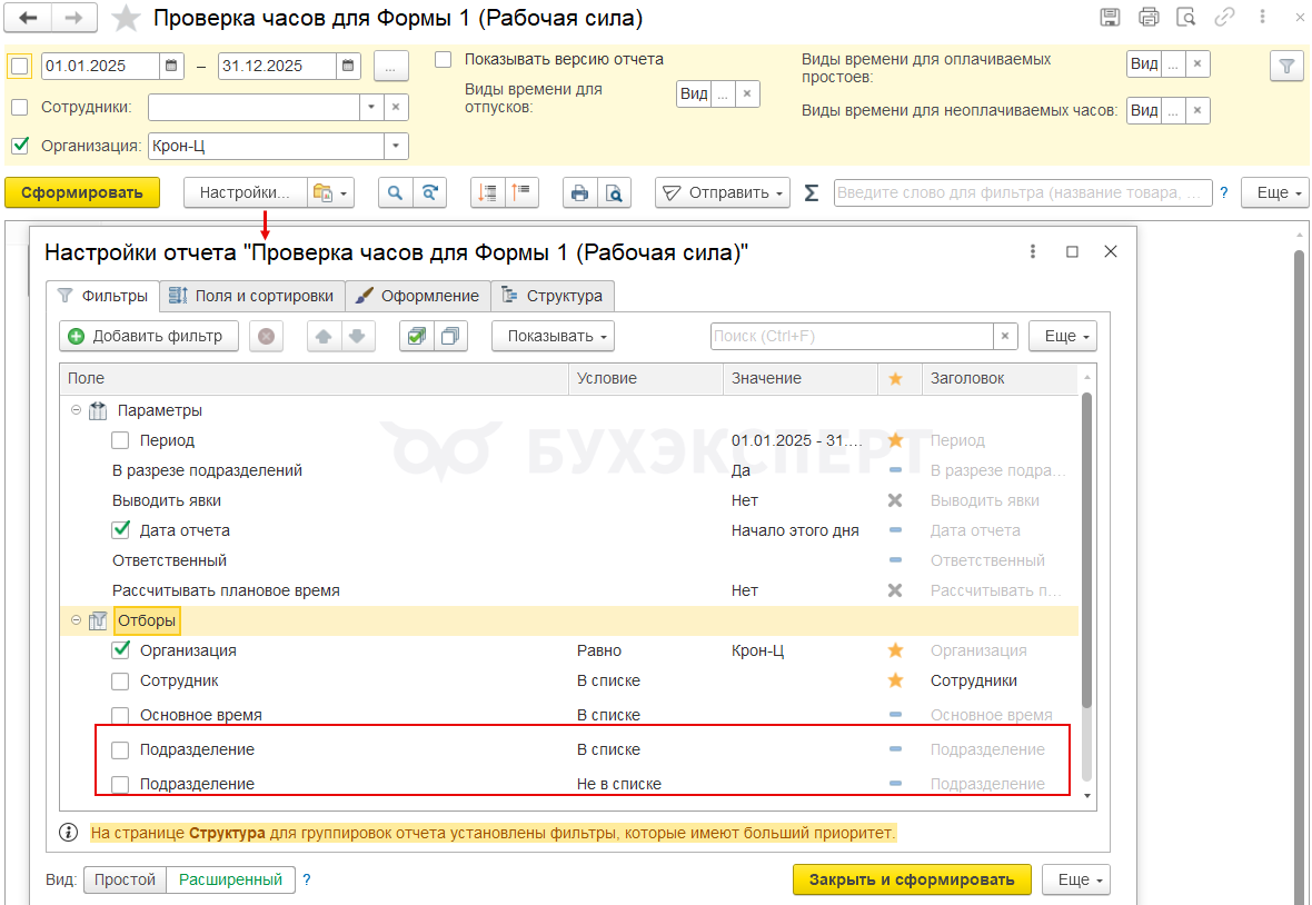 Если в организации есть филиалы или обособленные подразделения - исключить сотрудников этих подразделений в отчете не получится. Их придется «отсеивать» вручную.