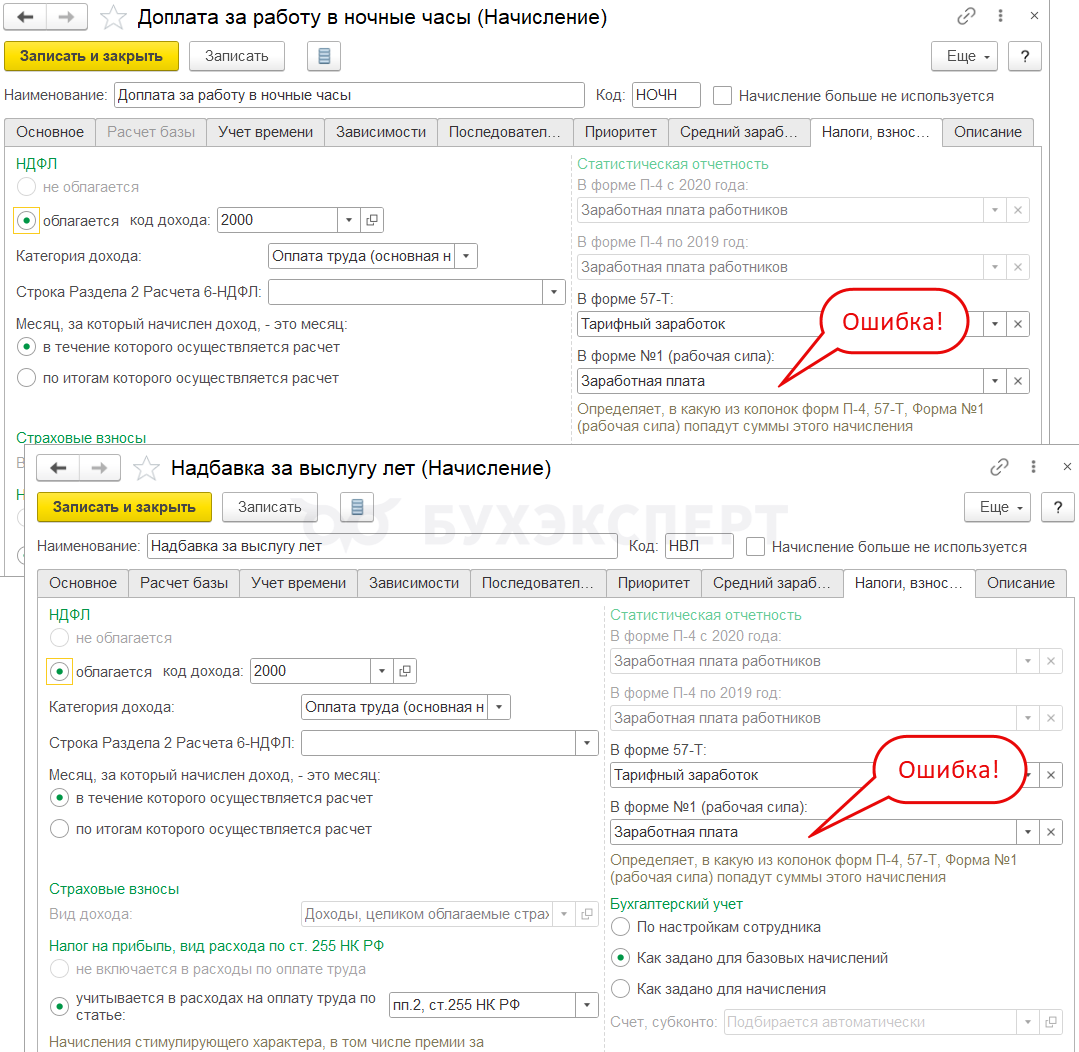 Также в таблице Категория статнаблюдения не заполнена могут быть виды начислений, по которым просто забыли заполнить этот реквизит. В этом случае дозаполянем настройки и формируем отчеты повторно.