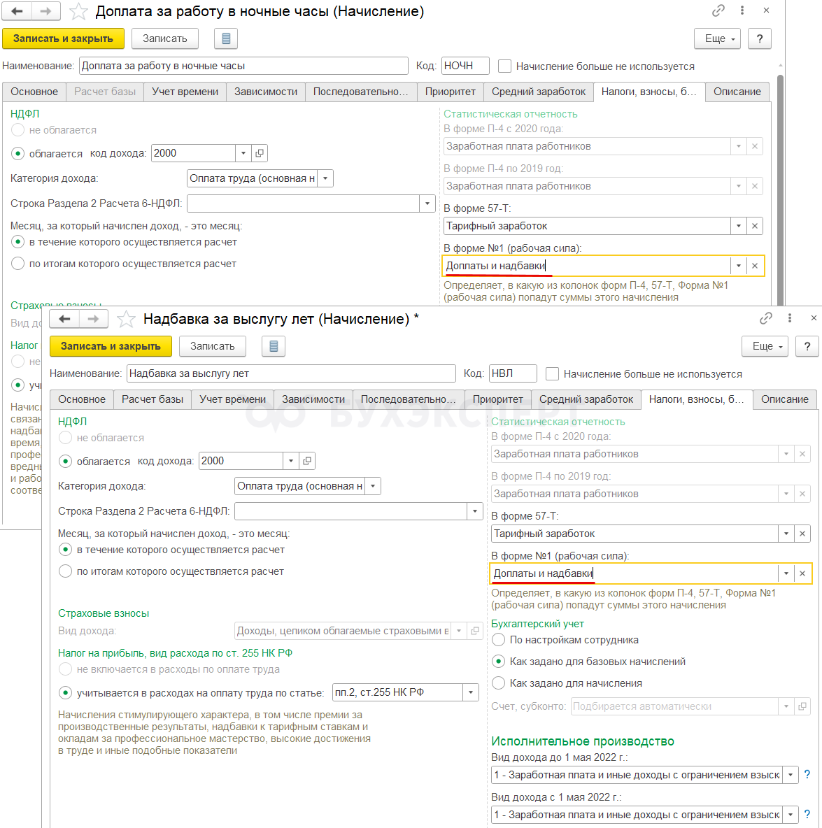Эти два раздела заполняем вручную. Отдельных настроек начислений в программе для них пока не предусмотрено.