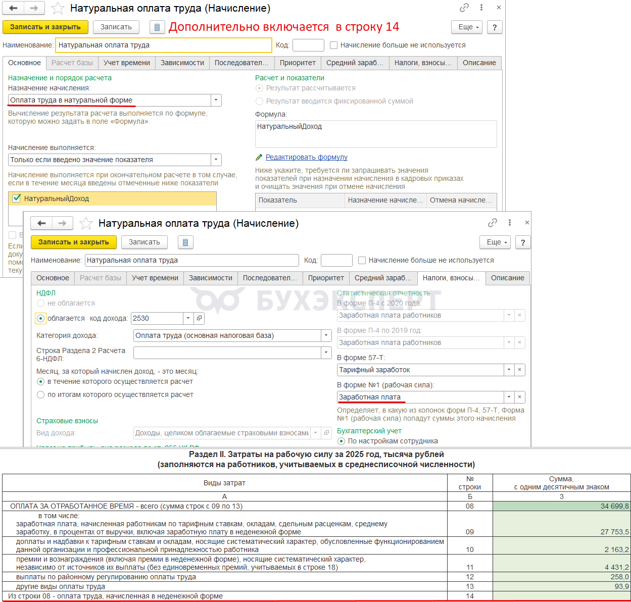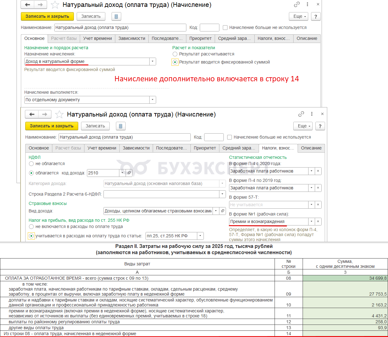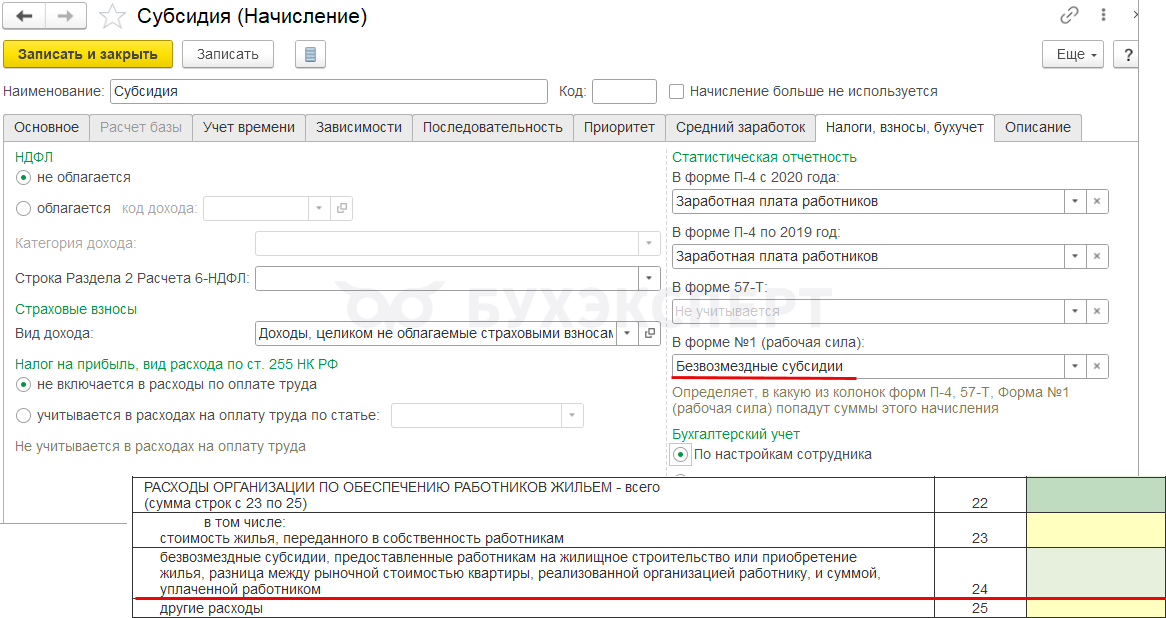 Чтобы начисление попало в строку 34 отчета, в настройках нужно указать категорию статистического наблюдения Другие расходы на социальную защиту