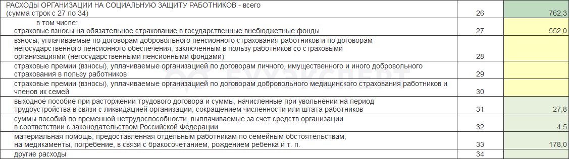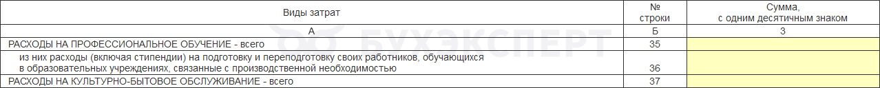 Список расходов на культурно-бытовое обслуживание (строка 37) приведен в п. 19.2 Указаний по заполнению формы. Среди них могут быть: