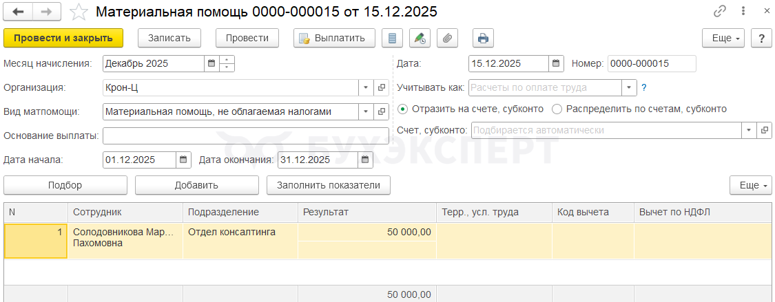 В декабре ей начислили матпомощь.