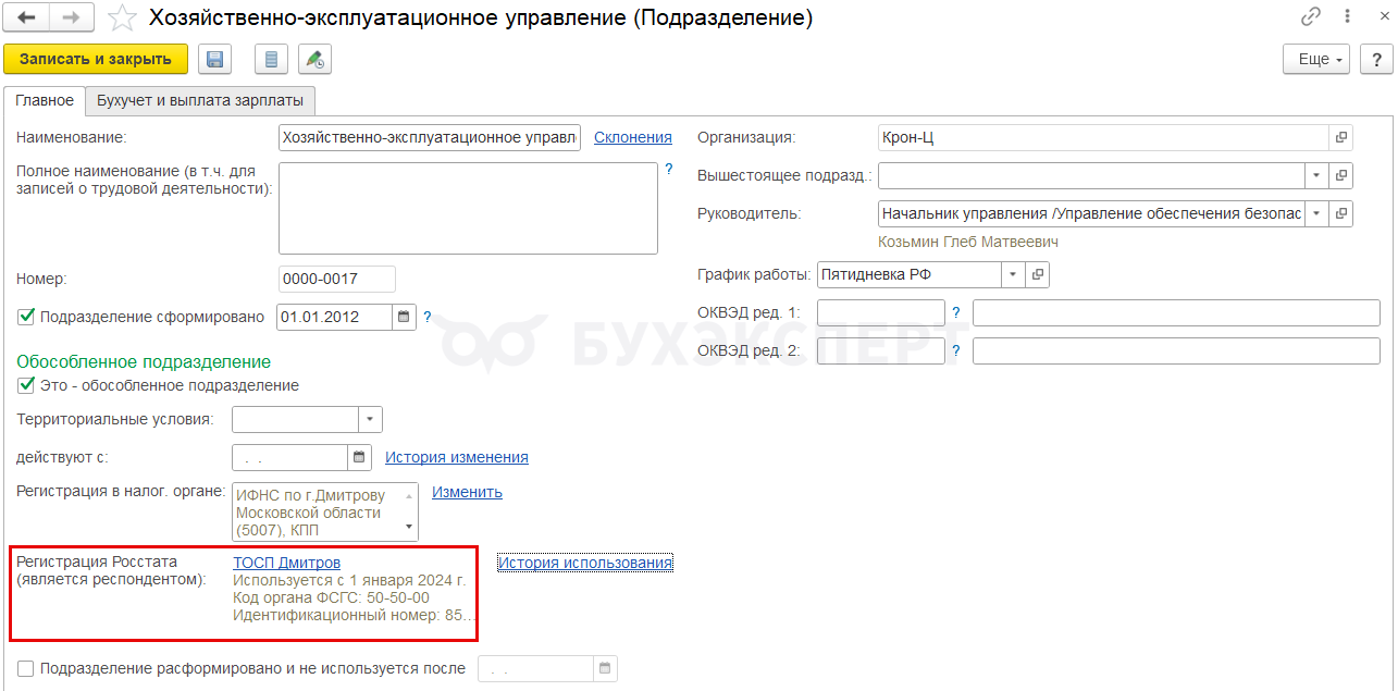 В Регистрацию Росстата может входить одно или несколько подразделений или Территорий.