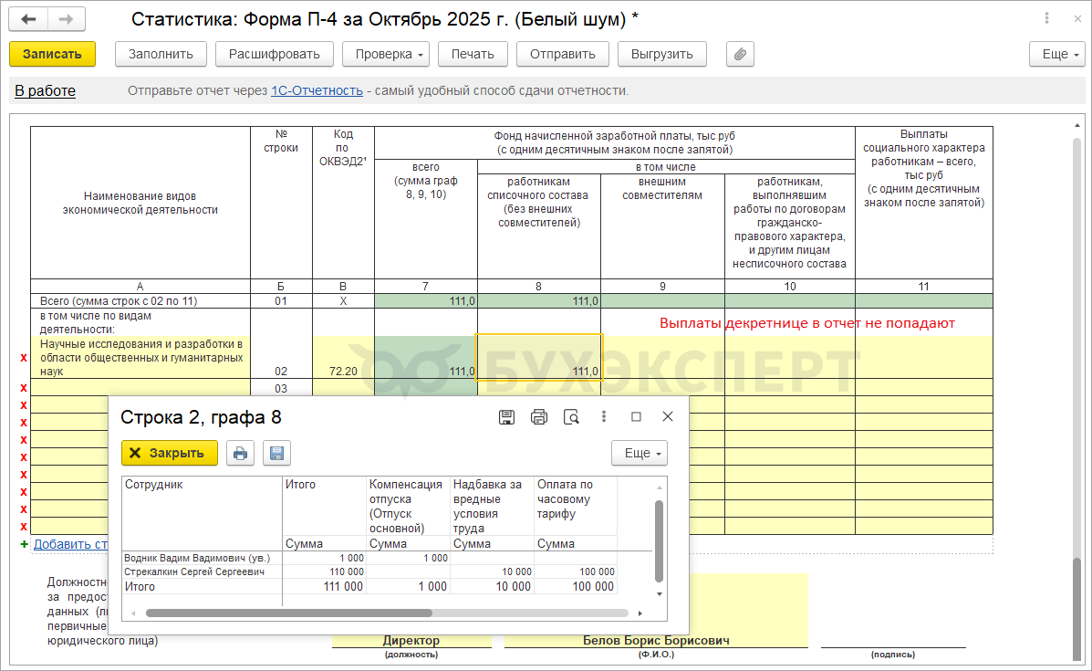 Как в отчете П‑4 отразить выплаты уволенной декретнице?